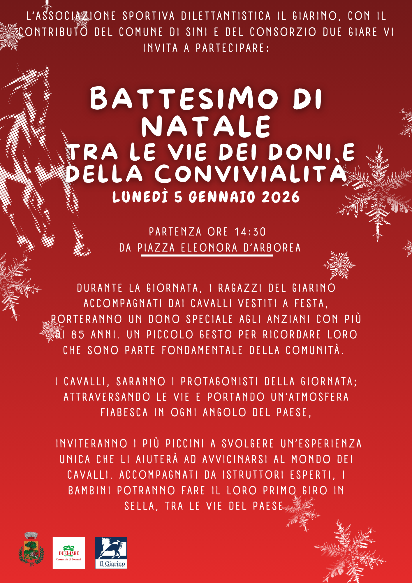 che si vogliono unire a noi, accompagnati dai cavalli, anch’essi vestiti a festa, porteranno un dono speciale agli anziani con più di 85 anni. Un piccolo gesto per ricordare loro che sono parte fondamentale della comunità e che non sono mai soli.
